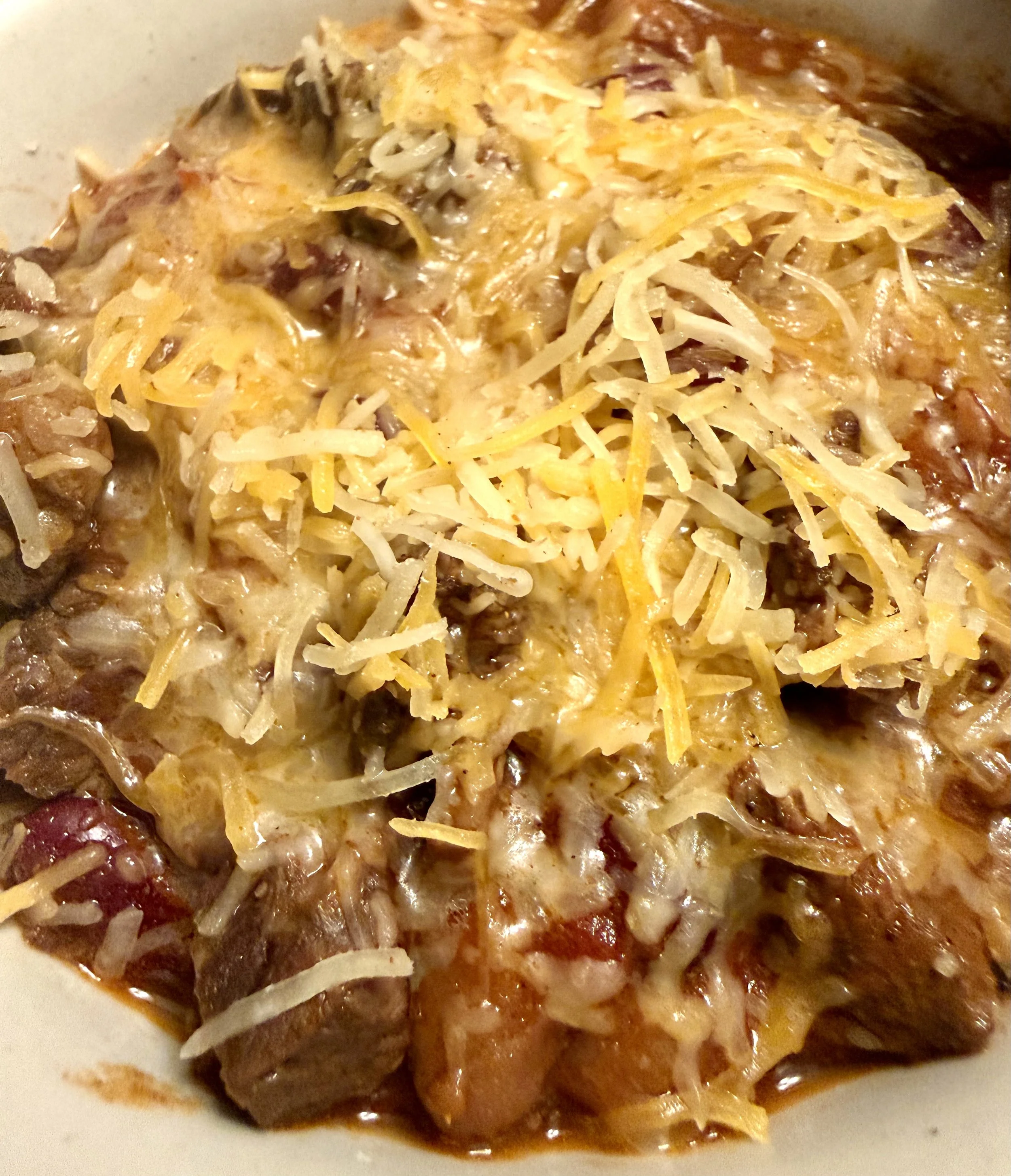 Watch the big game with this tender, cheesy bowl of goodness. Grass-Fed Beef Chuck Roast, kidney and pinto beans, crushed tomatoes, peppers & onions, and warm spices create this hearty, fiber-rich bowl that will keep you warm while you cheer for your favorite team!