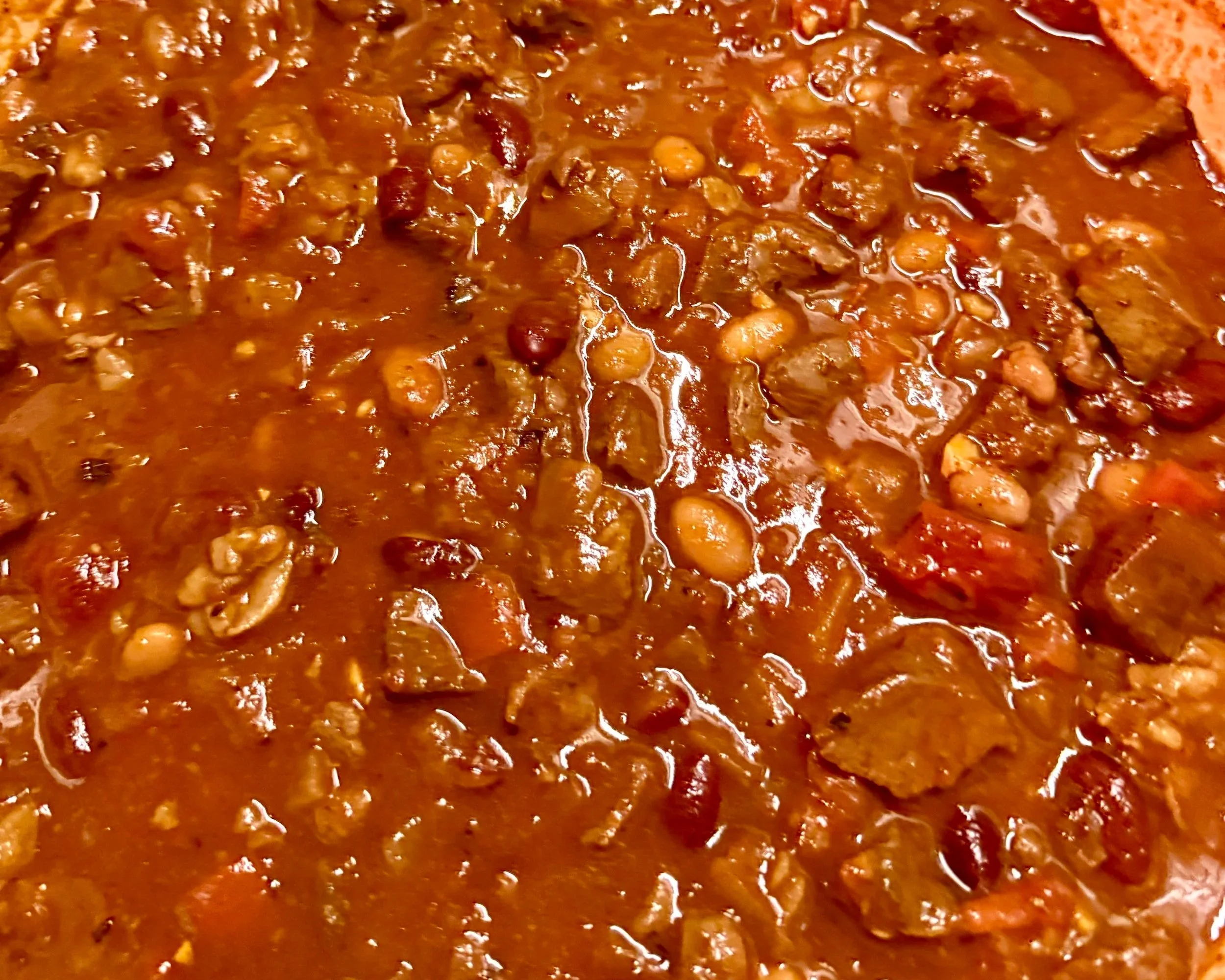 Return the seared meat to the pot, reduce to a simmer, and cover. Let the soup simmer for 2 hours before adding the kidney beans and pinto beans. Continue to simmer for another hour without the lid.